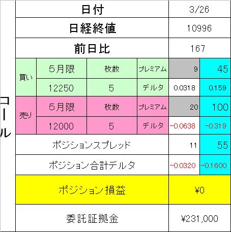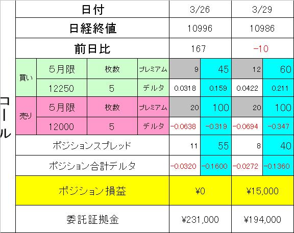 仕方なく5C12250買いポジションも決済し、マイナス計上となってしまいました。