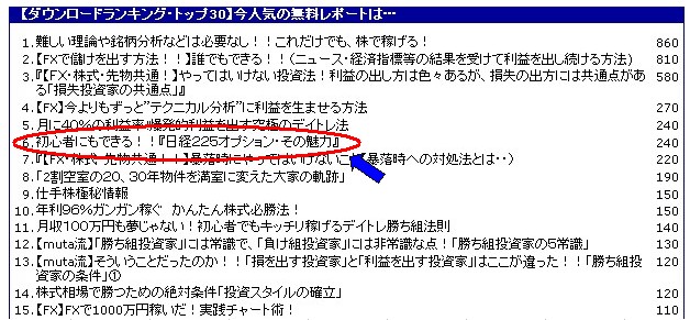 【無料レポート『初心者にもできる!!日経225オプション・その魅力』進呈中】無料レポートランキング