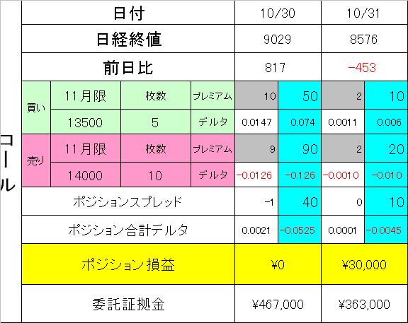 ※水色の部分が各ポジションのトータルのプレミアムとデルタです