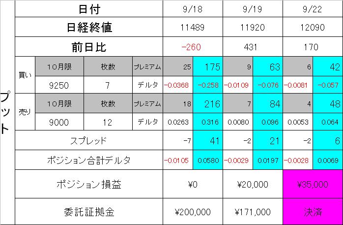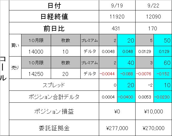 ※水色の部分が各ポジションのトータルのプレミアムとデルタです