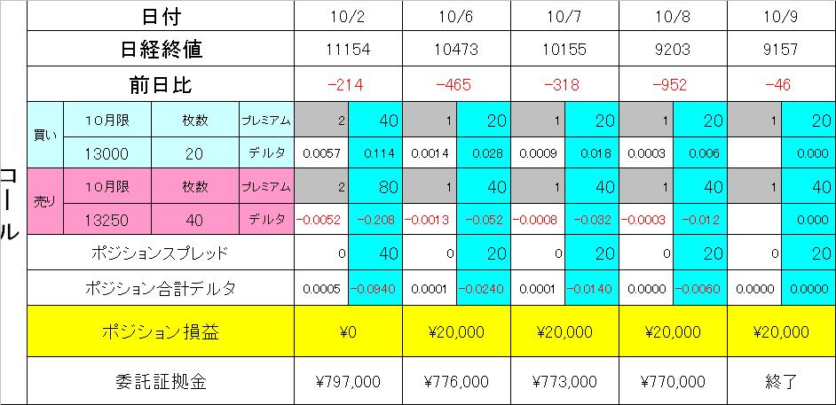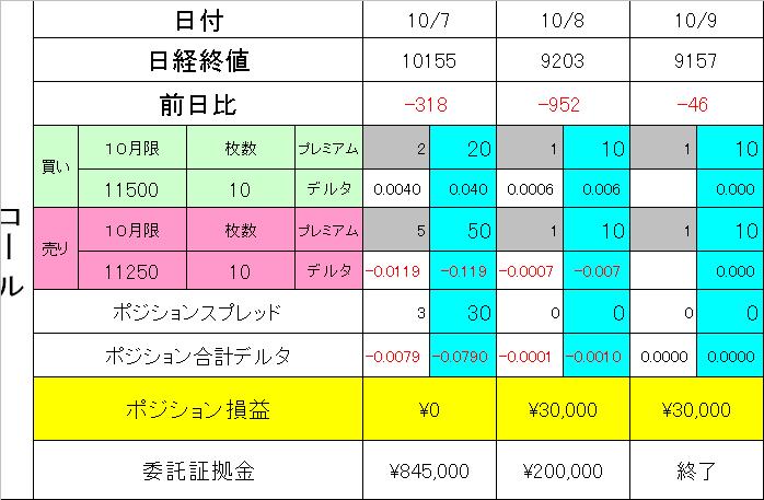 波乱の10月限も終了し、保有のコールポジションはすべてファーアウトですから明日無事SQ通過となる事でしょう^^