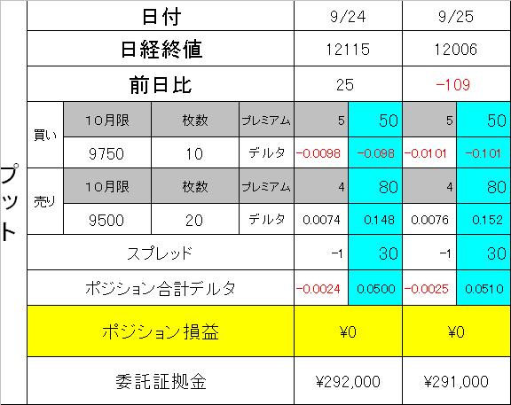 ※水色の部分が各ポジションのトータルのプレミアムとデルタです