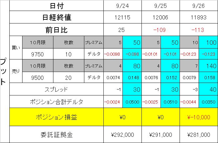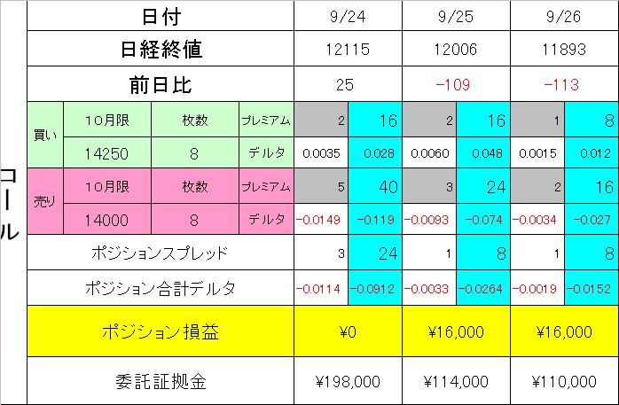 ※水色の部分が各ポジションのトータルのプレミアムとデルタです