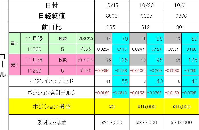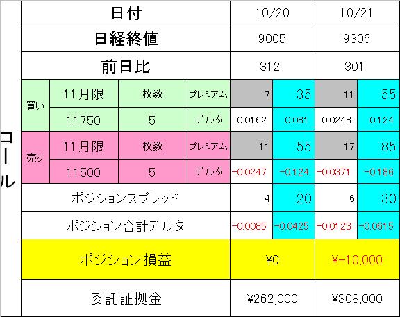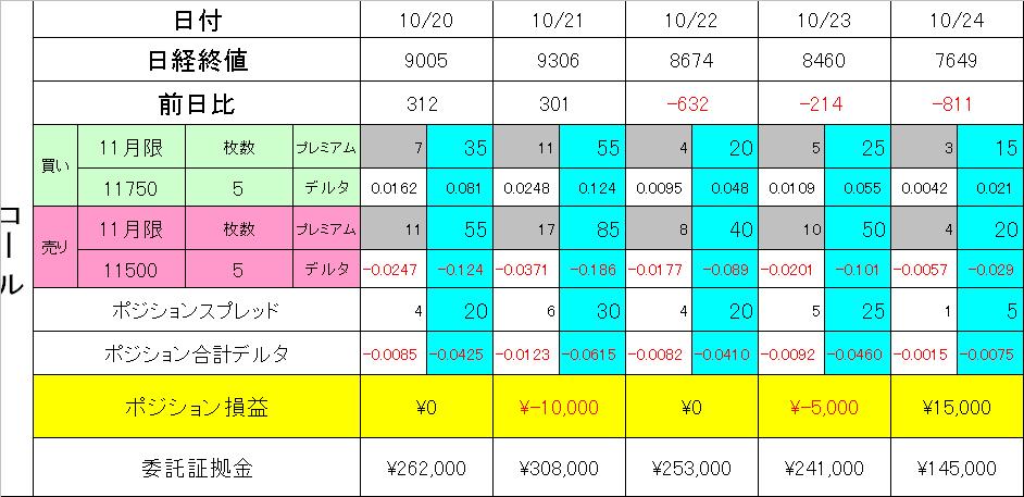 明日日経が下げればプットはプレミアムもデルタも加速度的に跳ね上がる可能性もあり、そうなればとても耐えられそうにありません。