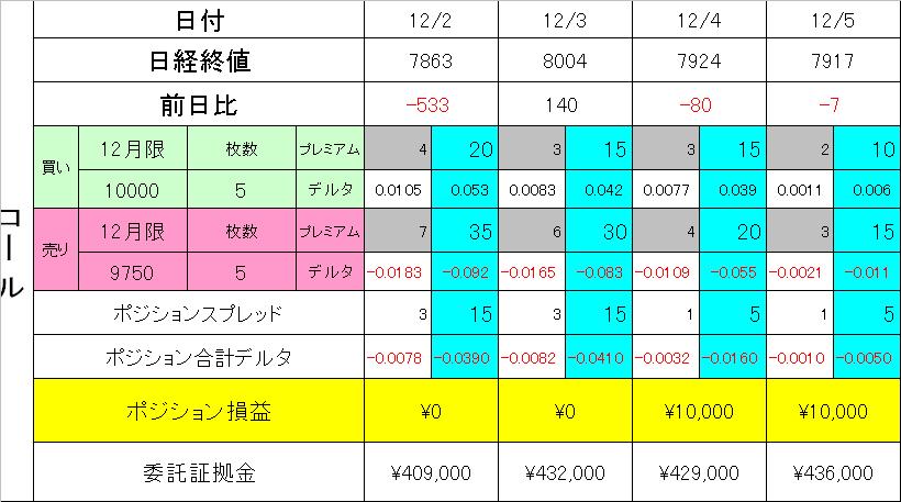 証拠金とプレミアム、デルタのバランスでいくと12月限はこの辺で終了にしようかと思います。