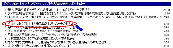 【無料レポート『初心者にもできる!!日経225オプション・その魅力』進呈中】無料レポートランキング