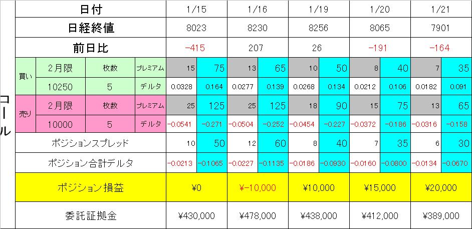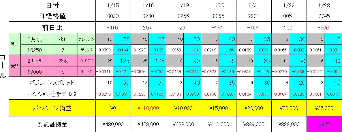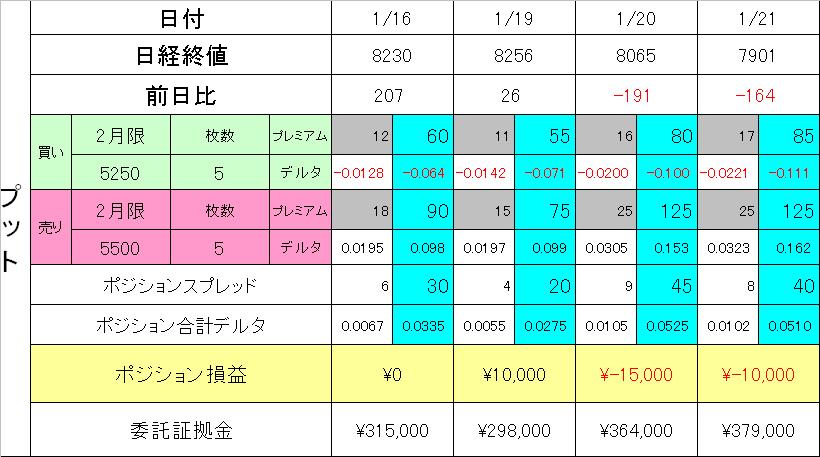 ヒヤっとしましたが、プットもコールもプレミアムがそこそこ剥げてくれています。