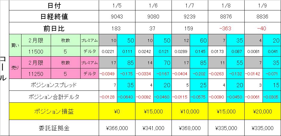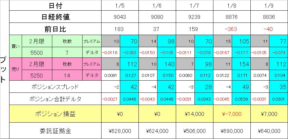 しっかり膨らんだプットの大外で新規とデルタ調整のコール新規を追加です。