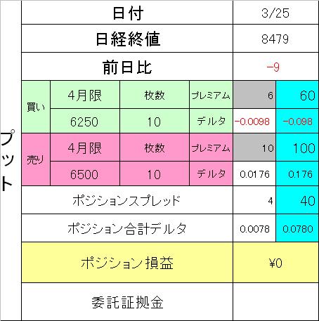 新たにコールとプットで新規を構築していますが今日のところは枚数は控えめにし、明日また積み増しする予定です。