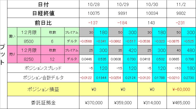 ただ全体のデルタがプラスに傾きすぎていますので、やむを得ずミニ先新規売りを追加して休日をやり過ごす事になりました^^;
