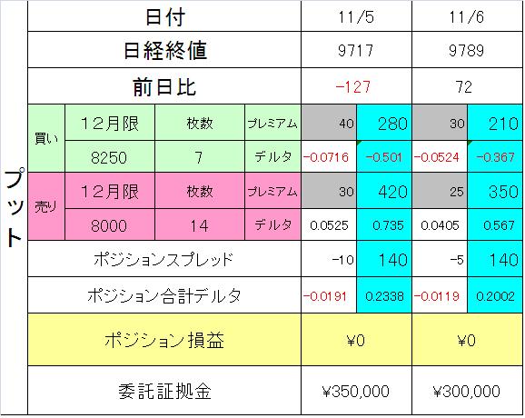 12月限プットレシオスプレッドを追加して、マイナスに大きく傾いたデルタをフラットに調整しています。
