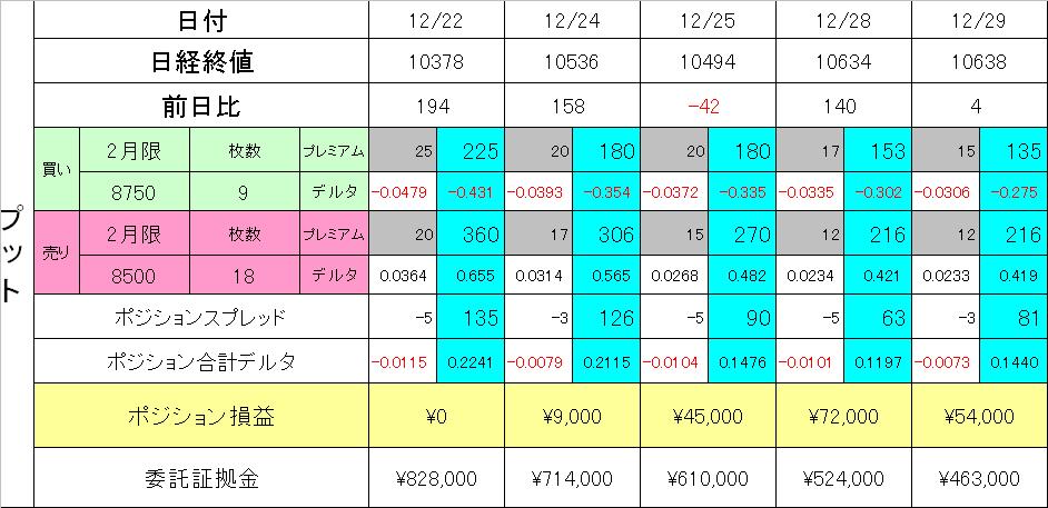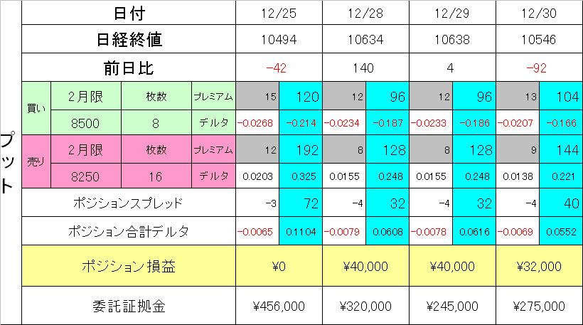 願いが通じたのか、日経が足踏みしてくれたおかげでプットのレシオスプレッドが一気に含み益となりプラ転しました!