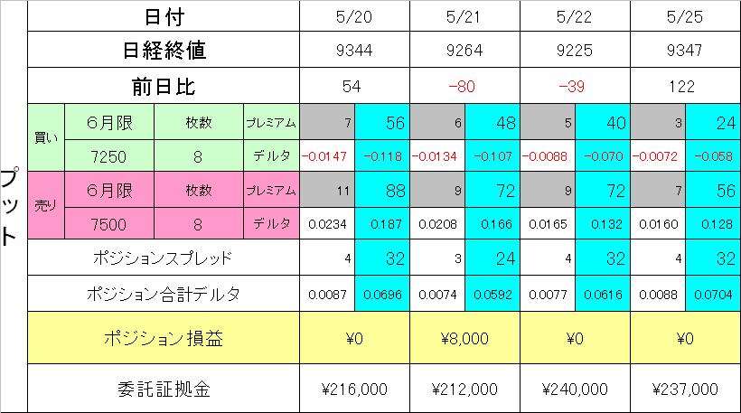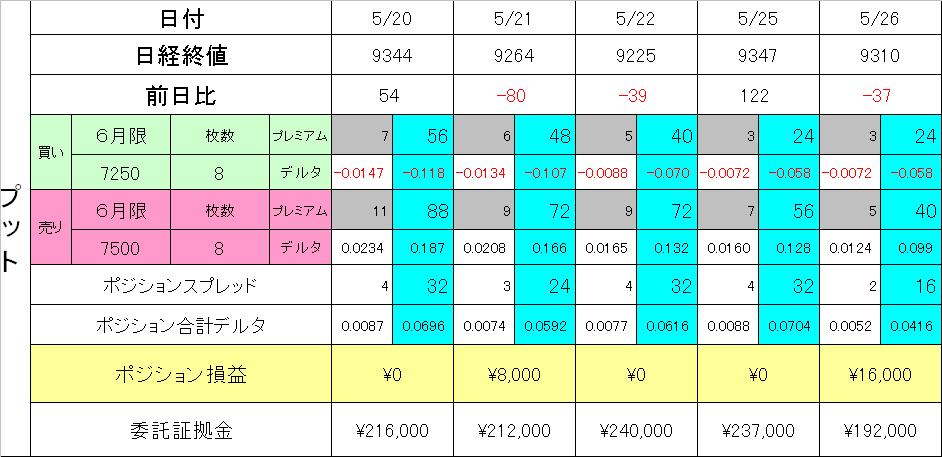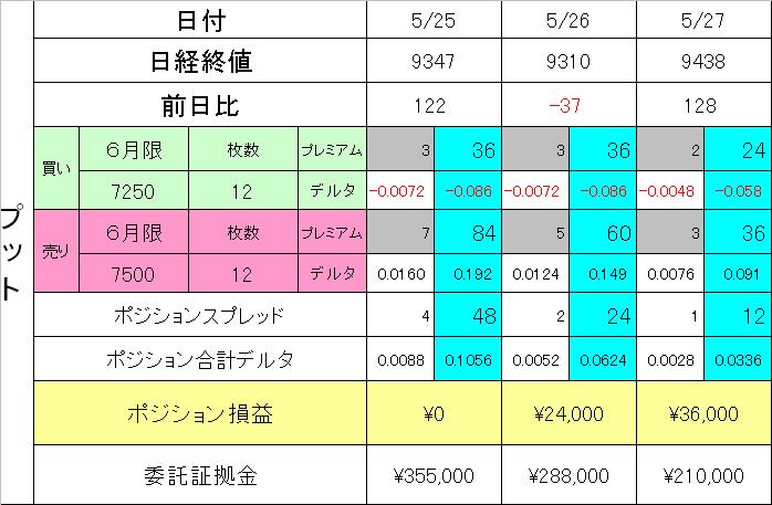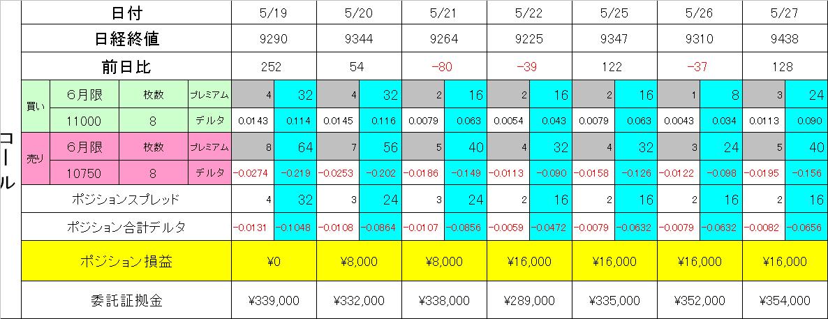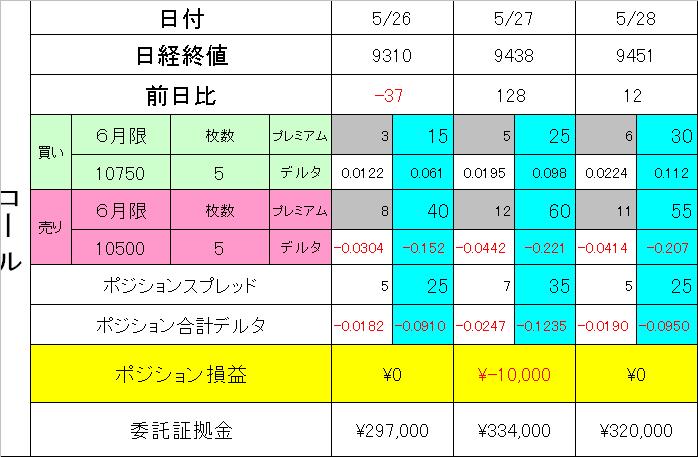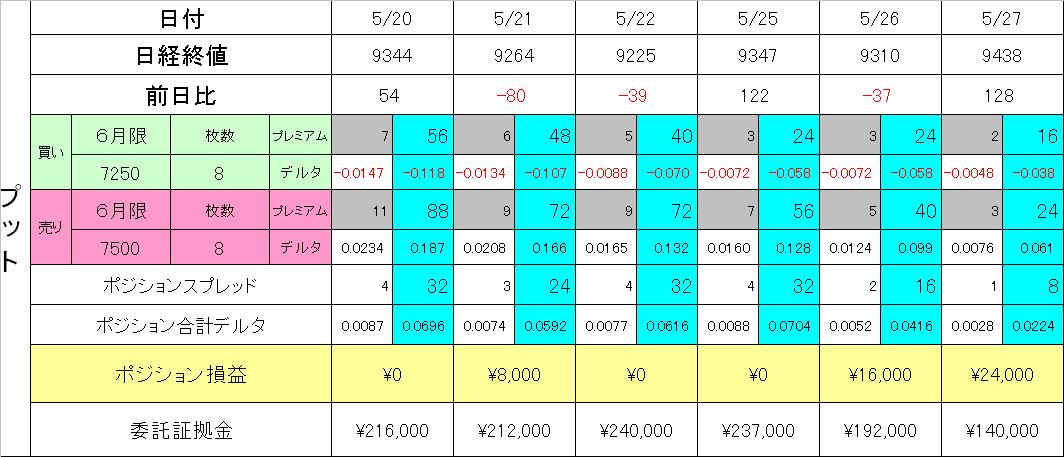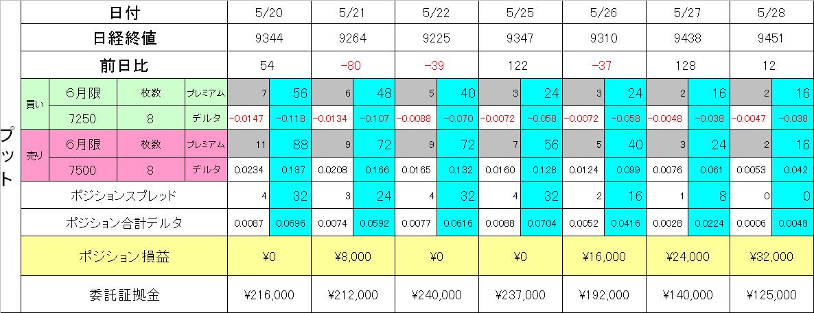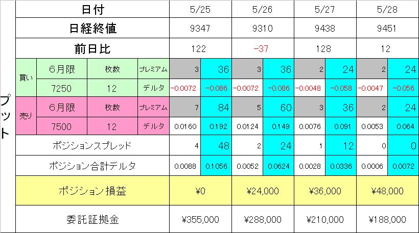 プットの利確とコール新規、そしてデルタ調整のプット新規と私にとっては教科書通りのトレードといったところです。