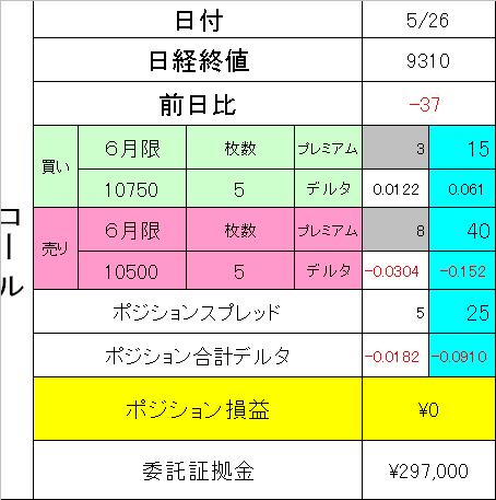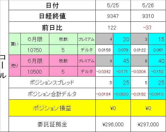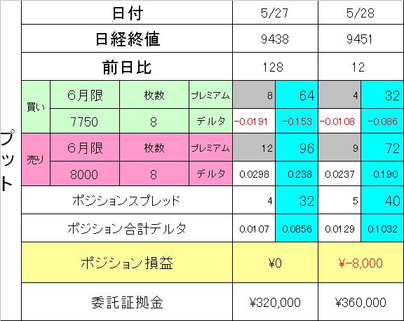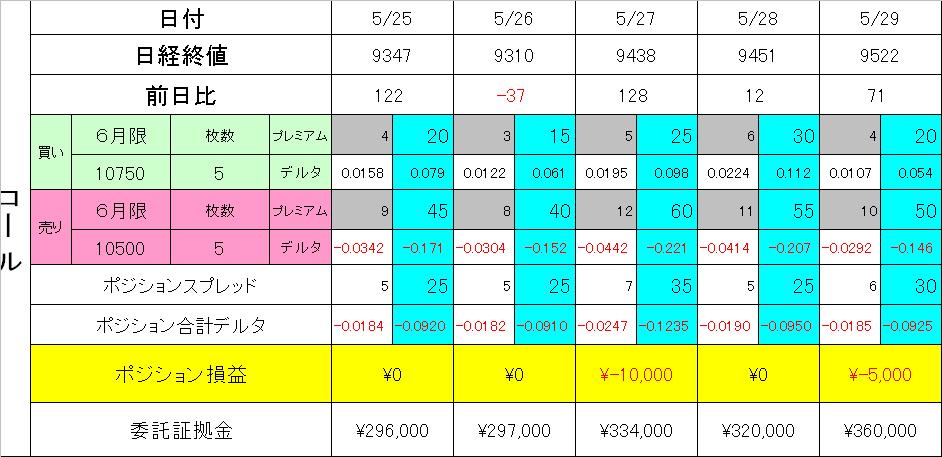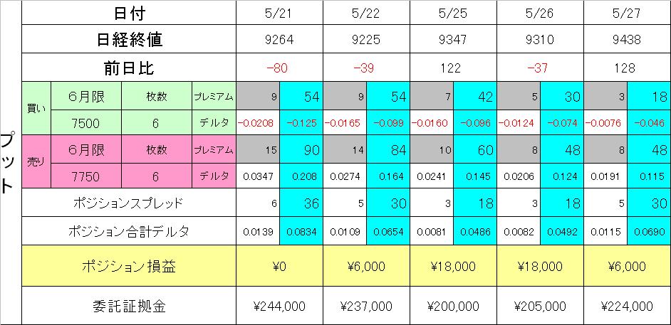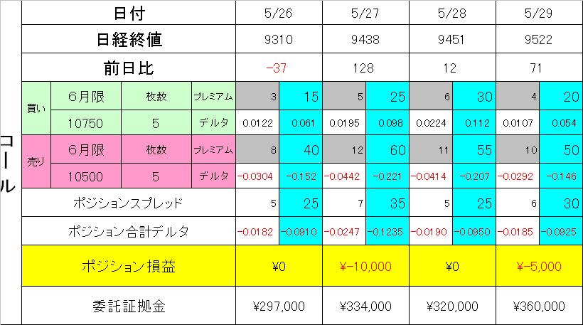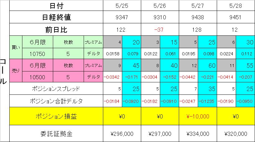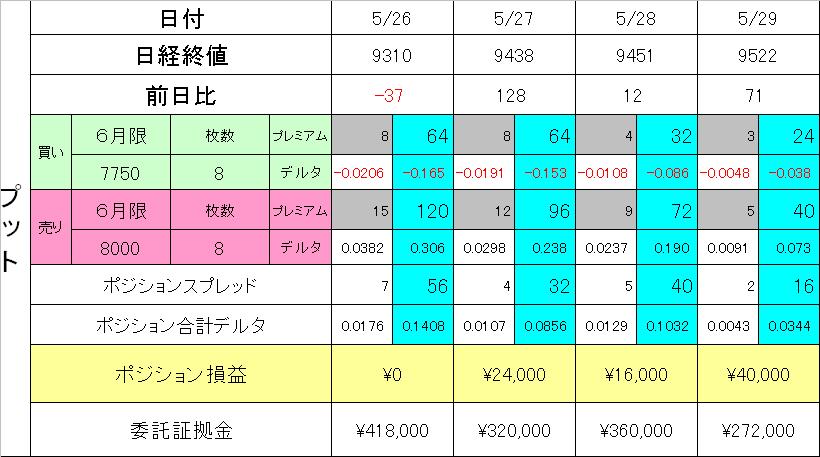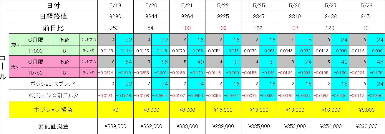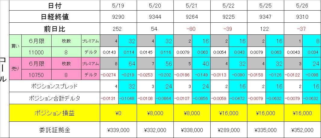 プットの利確とコール新規、そしてデルタ調整のプット新規と私にとっては教科書通りのトレードといったところです。