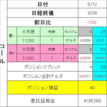 プットを控えめに追加とデルタ調整の為のコール新規構築というポジション構成ですが、コール売り玉の逆指値はいつもよりちょっと浅めにしときましょうか。。。
