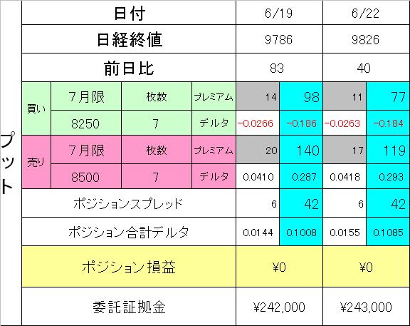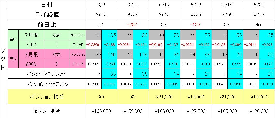 コールのポジションが損失分をうまくカバーしてくれていたので利確を・・・とも考えたのですが、そのまま生かし、プットを一つアウトにずらして再構築しています。