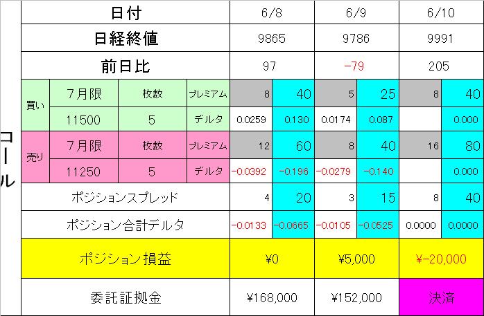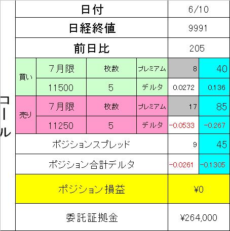 さて、6月限保有ポジションは無事SQ通過となり、そこそこの利益を計上出来ましたので満足しています^^
