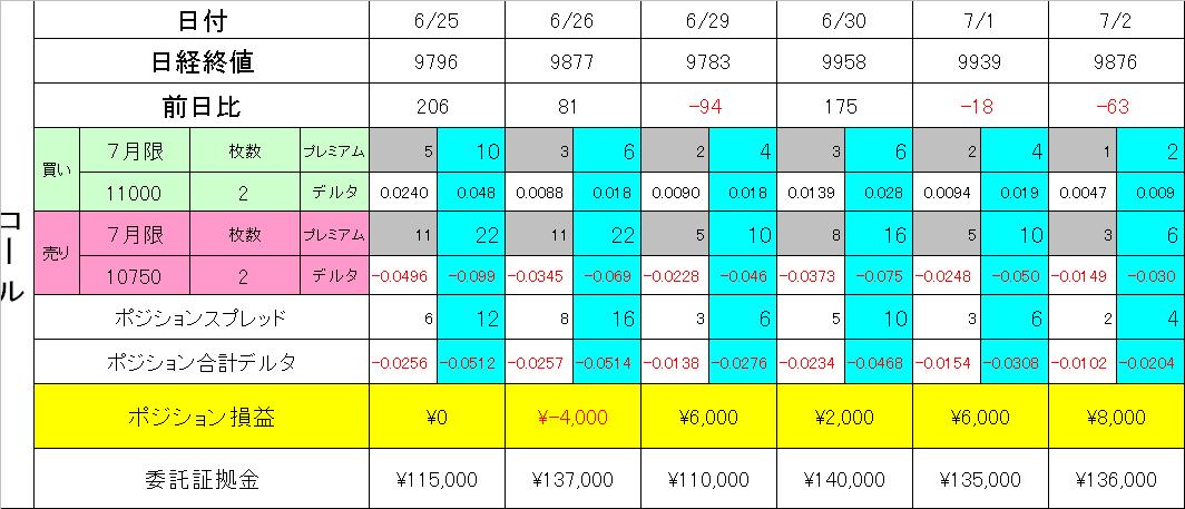 ということで、コールもプットも7月限は全てSQ持込みポジションとし、いよいよ最後の週を迎え撃つ事とします。