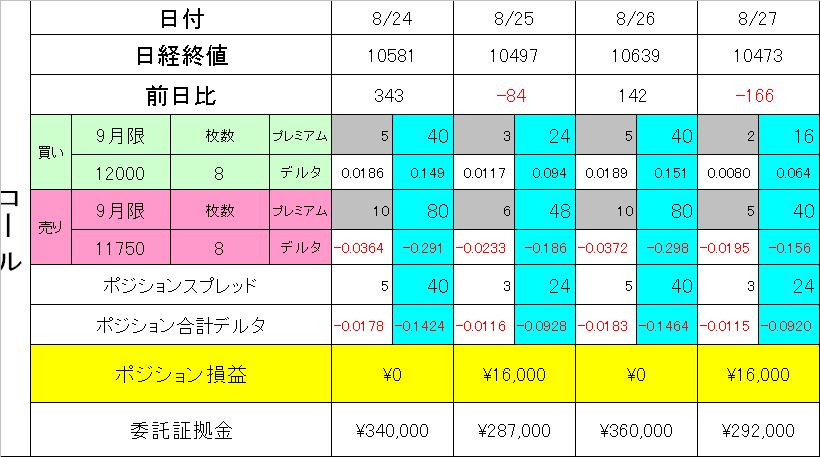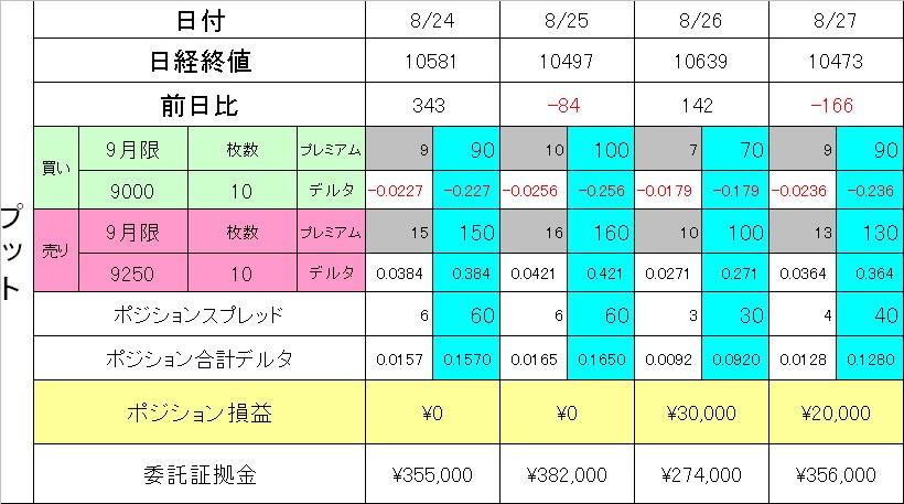 さて、今日はこんどはプラスに大きく傾いたデルタですが、この時期オプションポジションで調整かけるとセータがもったいないので、ミニ先買いを決済してデルタ調整します。