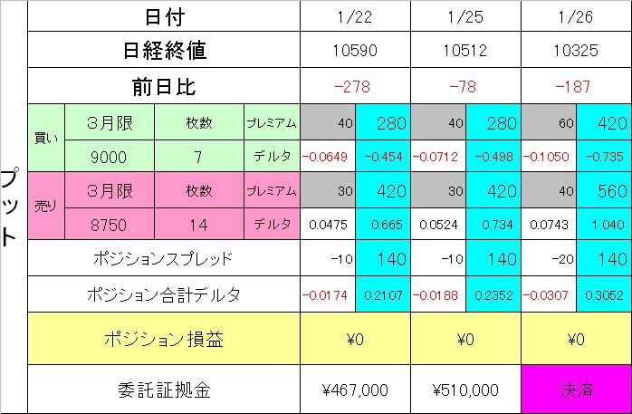 そしてデルタは、2月限新規ポジションのヘッジ分と、残りの3月限ポジションの調整分とでミニ先2枚売りにてフラットに調整完了。