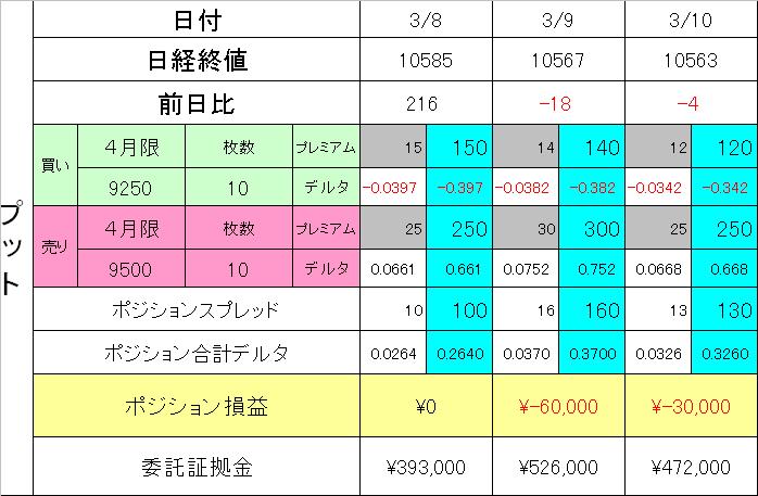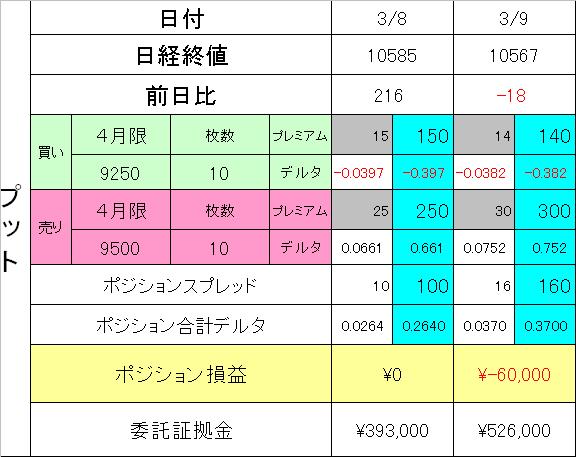 昨日仕掛けたプットは大変な事になっていますが、めげずにもう一度追っかけてスプレッドの新規を少し追加しています。。。