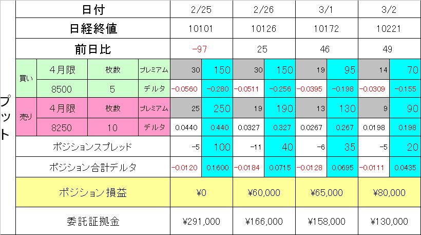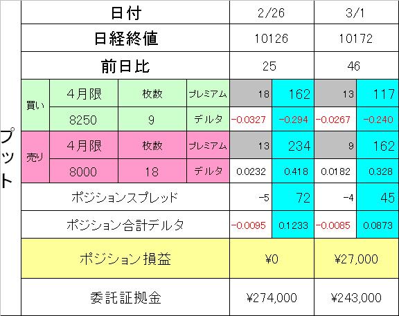 どんな日経の動きになるのか予想もつきませんが、ただただ流れに身を任せてデルタ調整あるのみです!!